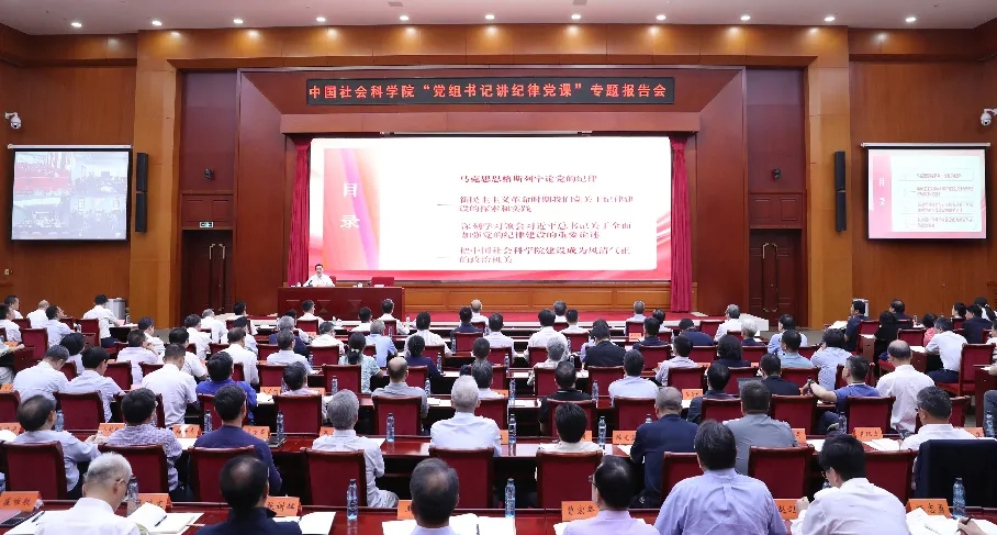 7月1日,中国社会科学院在京举办“党组书记讲纪律党课”专题报告会。院长、党组书记高翔以“从严抓好党的纪律建设 把中国社会科学院建设成为风清气正的政治机关”为题讲授党纪学习教育专题党课。副院长、党组成员甄占民主持报告会。中央纪委国家监委驻中国社会科学院纪检监察组组长、院党组成员杭元祥,秘书长、党组成员赵志敏,副院长、党组成员赵芮出席报告会。
