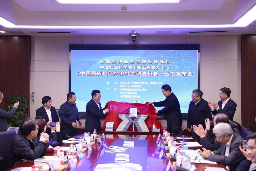 12月30日下午,由中国社会科学院民族学与人类学研究所和中国社会科学出版社主办,中国民族研究团体联合会、中国民族学学会和中国民族理论学会承办的国家社会科学基金特别委托项目暨中国社会科学院创新工程重大项目结项成果《中国民族地区经济社会调查报告》丛书发布会在中国社会科学出版社举行。会上发布了《中国民族地区经济社会调查报告》丛书51种。全国人大常委会社会建设委员会副主任、中国社会科学院学部委员李培林,中国社会科学院副秘书长、财务基建计划局局长马援出席并致辞。
