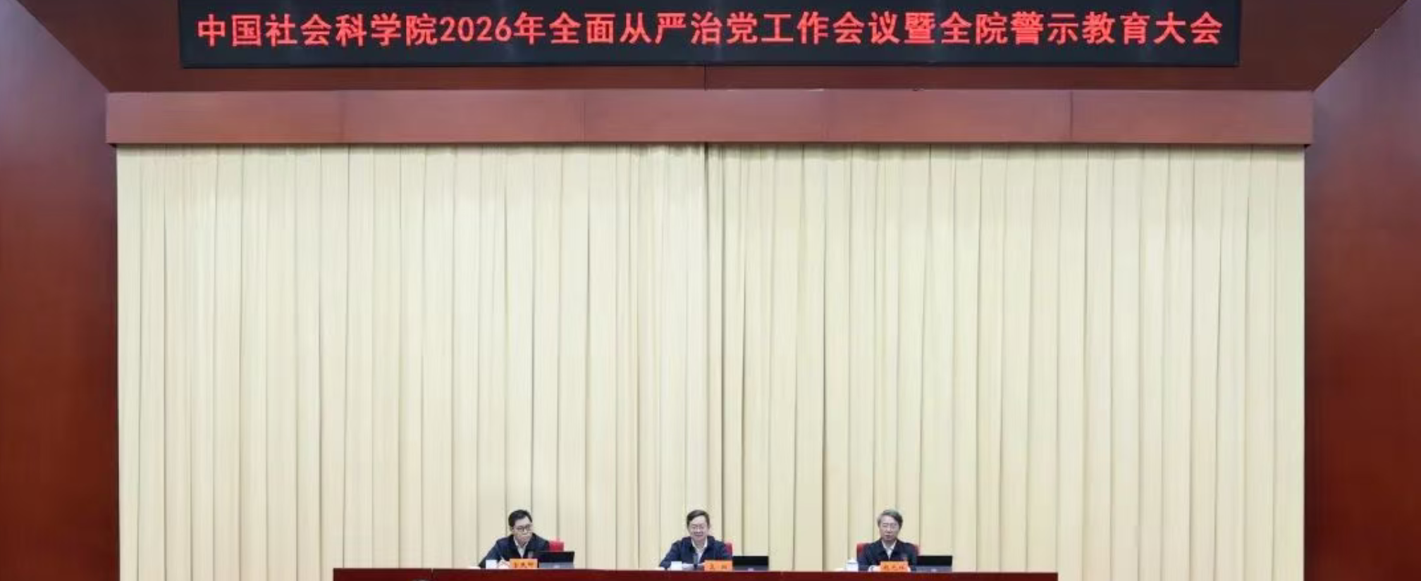 中国社会科学网讯(记者高莹)2月5日,中国社会科学院召开2026年全面从严治党工作会议暨全院警示教育大会,深入学习贯彻二十届中央纪委五次全会精神、2026年中央和国家机关党的工作暨纪检工作会议精神,部署2026年全面从严治党工作。院长、党组书记高翔出席会议并讲话。中央纪委国家监委驻院纪检监察组组长、院党组成员杭元祥通报有关情况并提出工作要求。院党组成员、当代中国研究所所长金民卿主持会议。